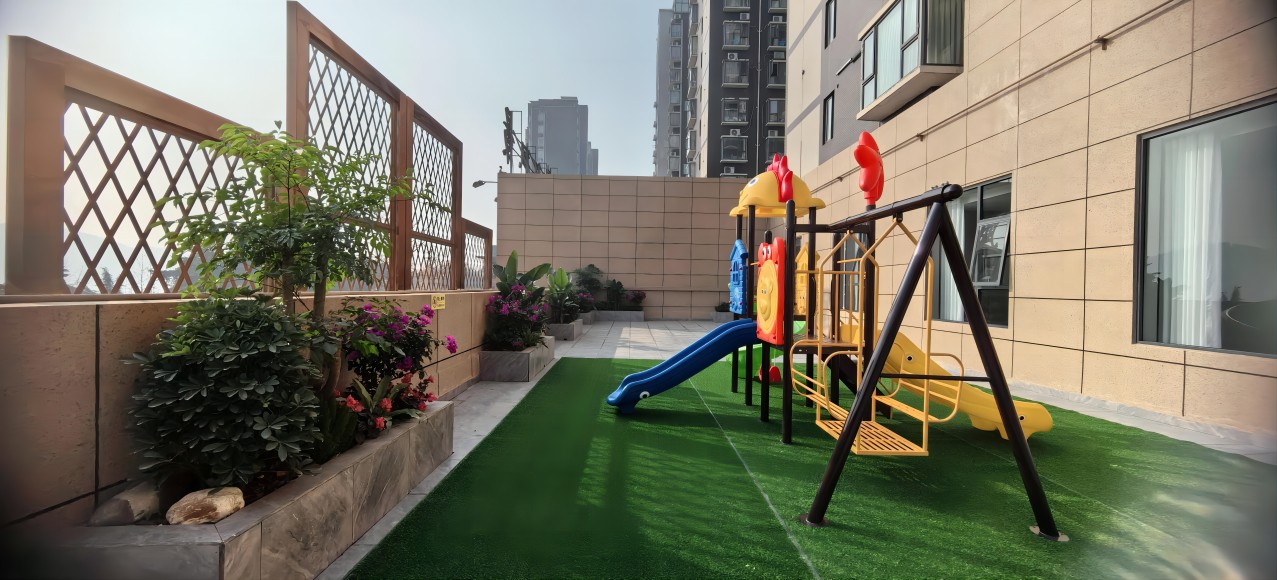 一個500平休閑平臺,一個兒童游樂區(qū),
